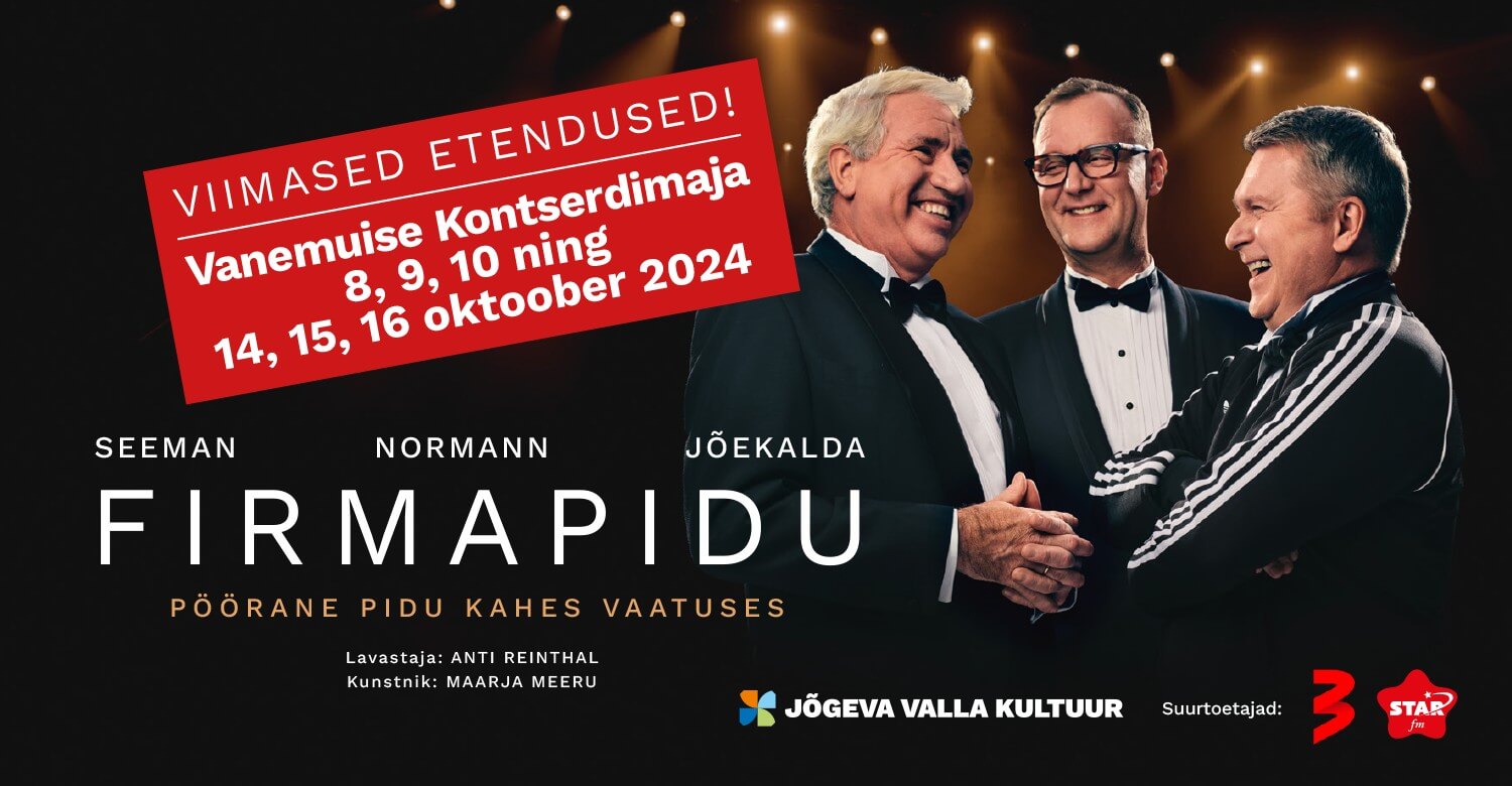Viimane võimalus! Selle aasta naljakaim lavastus Firmapidu on taas teie ees! Kevadel tervet Eestit pisarateni naerutanud Seeman, Normann ja Jõekalda tulevad tagasi vaid viimaseks kuueks korraks!