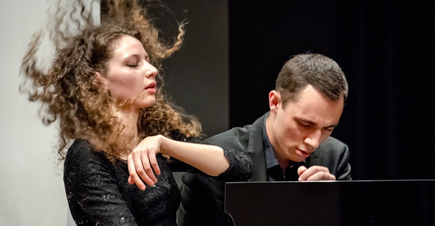 At the latest since winning a special prize at the ARD Music Competition 2021, the piano duo KALABOVA & GUGG regularly performs in major concert halls. Recently, they made their debut at the Vienna Konzerthaus, in the Brahms Hall of the Vienna Musikverein as well as at the Romanian Athenaeum in Bucharest as a substitute for Martha Argerich. Tereza Gugg-Kalabova (Czech Republic) and Johannes Gugg (Austria) were both born in 1998 and have formed a piano duo since their teenage years. Thanks to their early collaboration, they have experienced a significant part of their musical development together, resulting in a profound mutual understanding and finely nuanced, well-balanced interpretations. The aspiring duo was awarded numerous first prizes, for instance, at the International Chamber Music Competition Franz Schubert&Modern Music in Graz, the International Duo Competition Suzana Szörenyi in Bucharest, the ArtePiano Competition in Castelnuovo di Farfa, the International Schubert Piano Duo Competition in Jesenik, the Music and Earth Competition in Sofia, the Vlastimil Lejsek Piano Duo Competition in Brno, the Martha Debelli Scholarship Competition at the University of Music and Performing Arts Graz, the Austrian competition Prima la Musica and at the International Summer Academy of the mdw. In addition to that, they won 2nd prizes at the 14th International Piano Competition in Rome and the Duettissimo Piano Duo Competition in Krakow, where they were also awarded the Mozart Prize.